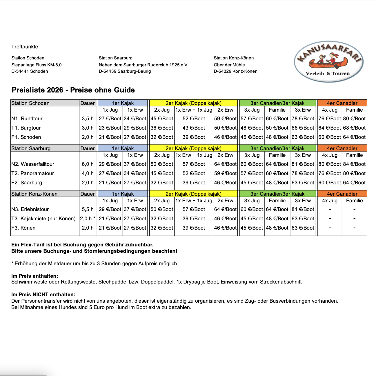Bei Fragen bitte eine Email senden an info@kanusaarfari.de